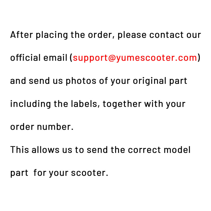 After placing the order, please contact our official email (support@yumescooter.com) and send us photos of your original part including the labels, together with your order number. This allows us to send the correct model part for your scooter.